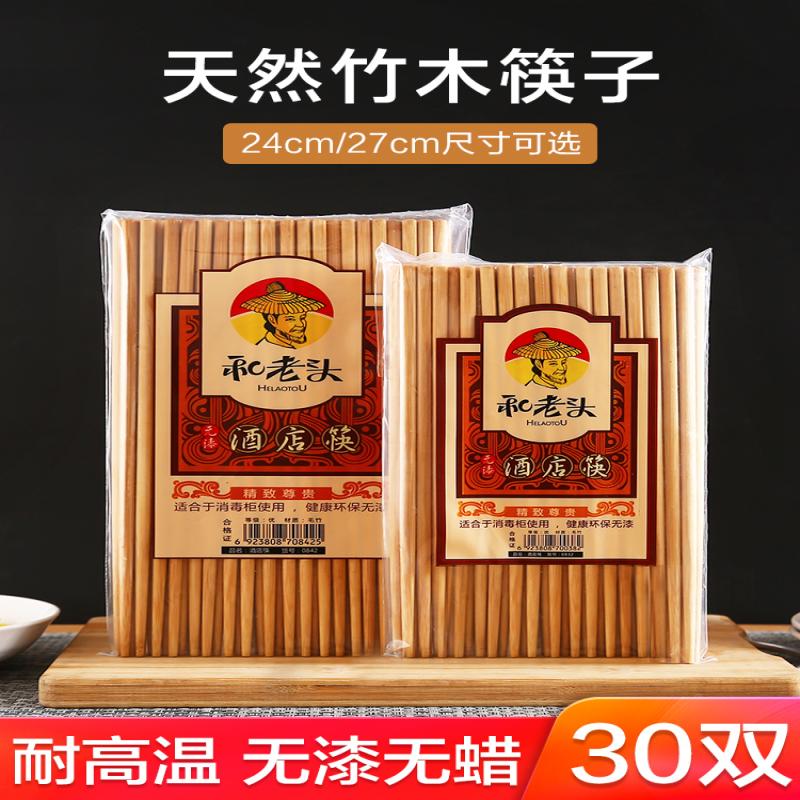 厨房餐饮用筷竹木筷家用筷子天然无漆无蜡竹筷子酒店饭店用筷30双热门设计联盟服务商