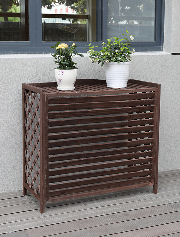 户外防腐木空调外机花架子阳台装饰置物架室外木质挡板空调外机罩热门设计联盟服务商