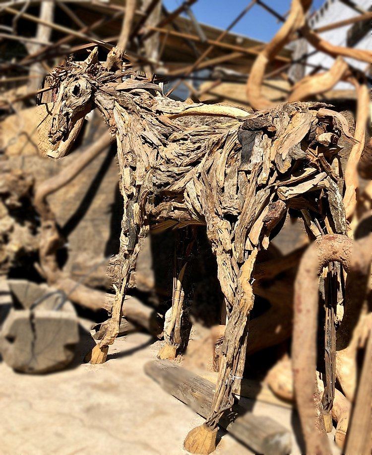 酒店民宿装饰木马大号意境手工马创意手工设计师软装实木摆件热门设计联盟服务商